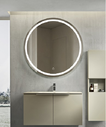 The Canopus Round LED Mirror 800×800 is a sleek and stylish round mirror featuring both front and ambient lighting, along with a built-in demister.