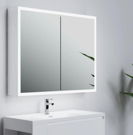 Mercury Aluminium Cabinet (Single Door) 800×700 features LED lighting along the edges, providing extra storage space, a toothbrush or shaver socket, and a demister, adding a touch of luxury to any bathroom.